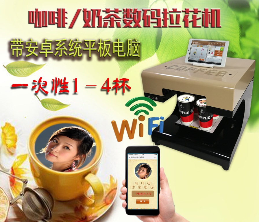 彩色數(shù)碼拉花機是一臺操作方便的咖啡機,能夠直接將客人的臉或想要表達的文字都能打印在咖啡/面包/餅干里。將面部細節(jié)打印在咖啡上是對咖啡拉花技術(shù)的創(chuàng)新,你不必再花大量的時間去學習,練習拉花,你要做的僅僅是拍個照片,然后就可以交給打印機了,實現(xiàn)個性創(chuàng)藝咖啡拉花效果。